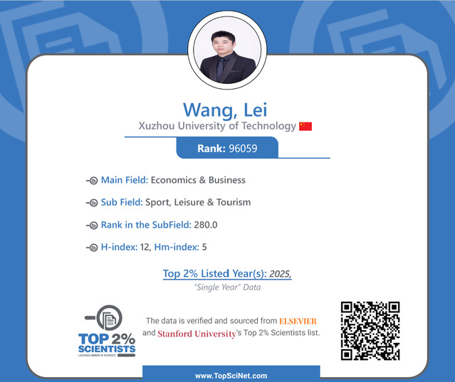 公司旅游管理专业王磊老师入选斯坦福大学(Stanford University)和国际权威学术出版社爱思唯尔(Elsevier)共同发布的2025年全球前2%顶尖科学家榜单(World's Top 2% Scientists),该榜单分为终身科学影响力排行榜(Career-long Impact)和年度科学影响力排行榜(Single-year Impact)。王磊老师在2025年度科学影响力榜单中位列全球酒店旅游体育管理类排名第280位,是公司人文社科类唯一上榜的顶级科学家。