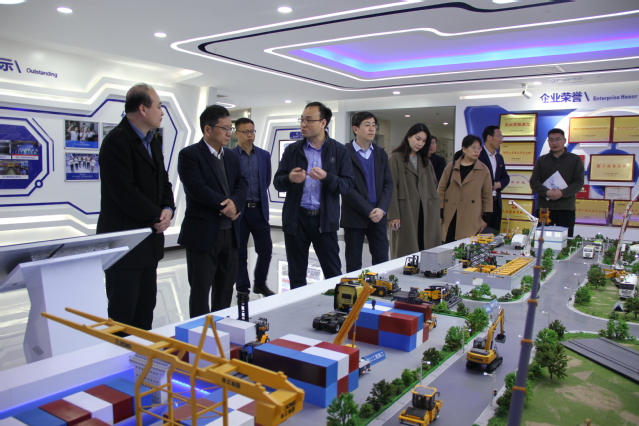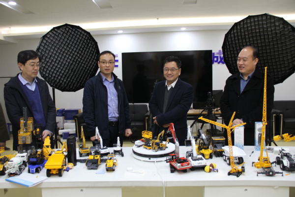 首先,企业负责人带领参观了徐工电商公司展厅,观看了“徐工电商生态数据智慧平台”大屏,深入了解企业发展概况,国内外电商产品、平台供应链、企业文化理念等。张董事长驻足徐工电商产品沙盘前,认真观摩产品工作场景,还兴致勃勃地参观了徐工电商直播间,真实体验电商产品的运营情况。