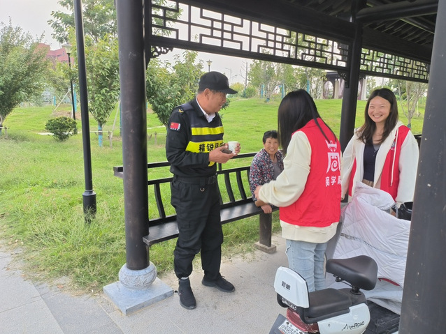 活动开始前,志愿者们提前观察好送茶的对象,准备好相应物品。活动过程中,他们来到叔叔阿姨工作的地方,食堂的阿姨们在准备香甜可口的午饭,宿舍楼下的环卫阿姨在清扫楼内的垃圾,公司门口的保安叔叔正辛勤巡逻,保护我们的安全。志愿者们来到他们身边,关切地问候他们,并递上了热腾腾的茶水。在交流过程中,彼此都收获了温暖。并在活动结束后,与叔叔阿姨们合照,向他们表示真诚的感谢。