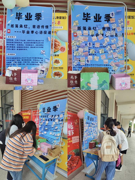 本次活动采用线上线下同时展开。线上通过在表白墙书写临别赠语表达对毕业生们的嘱咐;线下则通过便签书写寄语,公寓宿舍楼前投递的形式,来表达对即将毕业的学子表达美好的祝愿。活动一经开展,就受到了全体同学的广泛关注。大家纷纷积极响应。本次活动共收到百余份祝福卡片。同学们精心绘制的卡片上,句句祝福,字字深情,充分显现出对毕业学子的真切祝福。一声声美好的祝福萦绕耳边,寄语中承载着不舍与憧憬,表达了对毕业生最美好的希冀。