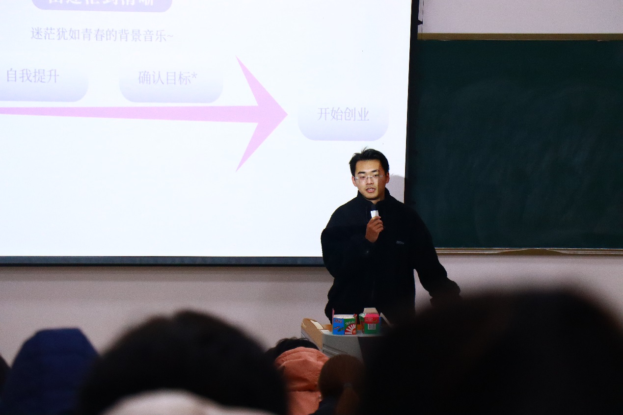 紧接着,饶岑龙学长着重介绍了目前正在从事的创业经历。他是溧阳睿晟动视电子商务服务部经营者和徐州家天下文化传媒有限公司的联合创始人。他先介绍了自己的创业背景和徐州家天下、溧阳睿晟动视的发展历程。他认为,短视频和TIK TOK等自媒体平台为创业者在电子创意领域提供了前所未有的机遇,广大同学要增强行业敏感度,积极拥抱技术变革,利用电商平台积极开拓市场和建立品牌,利用自媒体工具实现创业梦想。