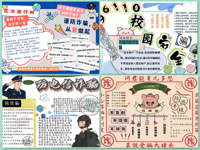 为进一步丰富反诈宣传形式,提升同学们对各类电信网络诈骗的防范意识,推动平安校园建设,营造浓厚的反诈宣传氛围,11月8—15日,bw西汉姆联在公寓区组织开展“全员反诈,你我同行”手抄报设计比赛活动。