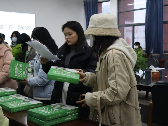 如果说,励志人物评选展示给在场的学子们送去了“精神上的暖”,那么公司为同学们精心准备的暖冬礼包又给学子们送去了“身体上的暖”。一直以来在每年冬季为受资助学子送去暖冬关怀已是商院传统,为同学们以后的学习和生活提供了精神动力,勉励同学们不断刻苦学习,励志成才,成为“凡星”。