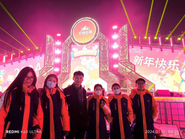 温法鑫员工(右一)在徐州方特乐园与同事合影
